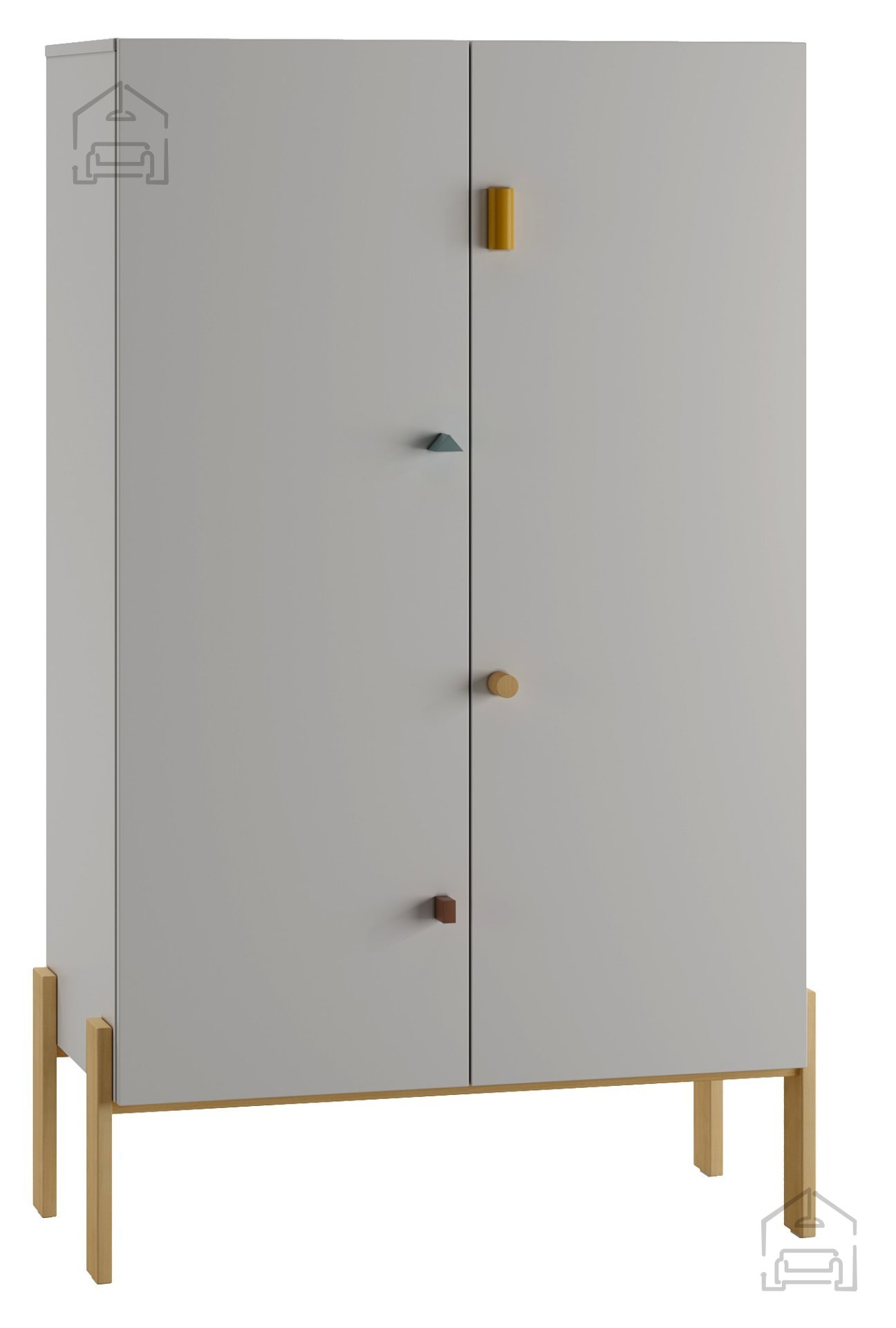 Der Schrank ist aus laminiertem Spanholz (Korpus, Außenelemente) und massivem Buchenholz (Beine, Griffe) gefertigt. Die verwendeten, zertifizierten Farben entsprechen der Norm EN 71-2. Bei der Herstellung wurden Platten mit reduziertem Formaldehydgehalt gemäß der Norm E05 verwendet. Die Möbelbeine können auf zwei verschiedenen Höhen (Unterschied 128 mm) montiert werden. Die Möbel werden mit Griffen aus lackiertem Buchenholz geliefert, können aber auch in einer anderen Farbe bestellt werden.
