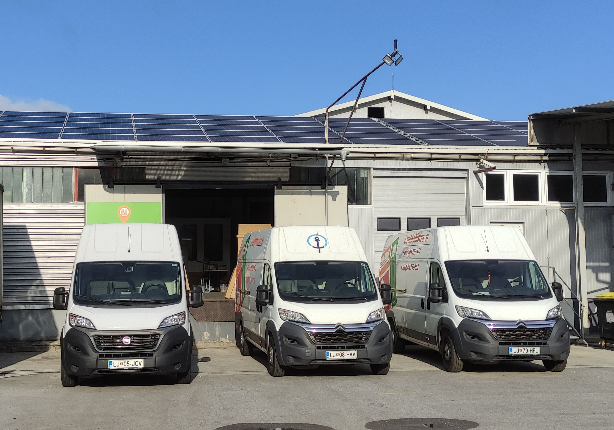 Das Lager befindet sich auf der Rückseite des Gebäudes Elma Črnuče. Unsere Rampe ist die vorletzte auf der rechten Seite, neben der Firma Europap.